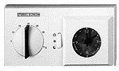 Регулятор комнатной температуры с обратной температурной связью, диапазон регулирования от 5 д 30 °С, с дополнительным двухпозиционным переключателем "ВКЛ/ВЫКЛ" для дополнительных нагревательных элементов. Возможно ночное снижение на ~4 К с помощью внешнего выключателя/таймера.